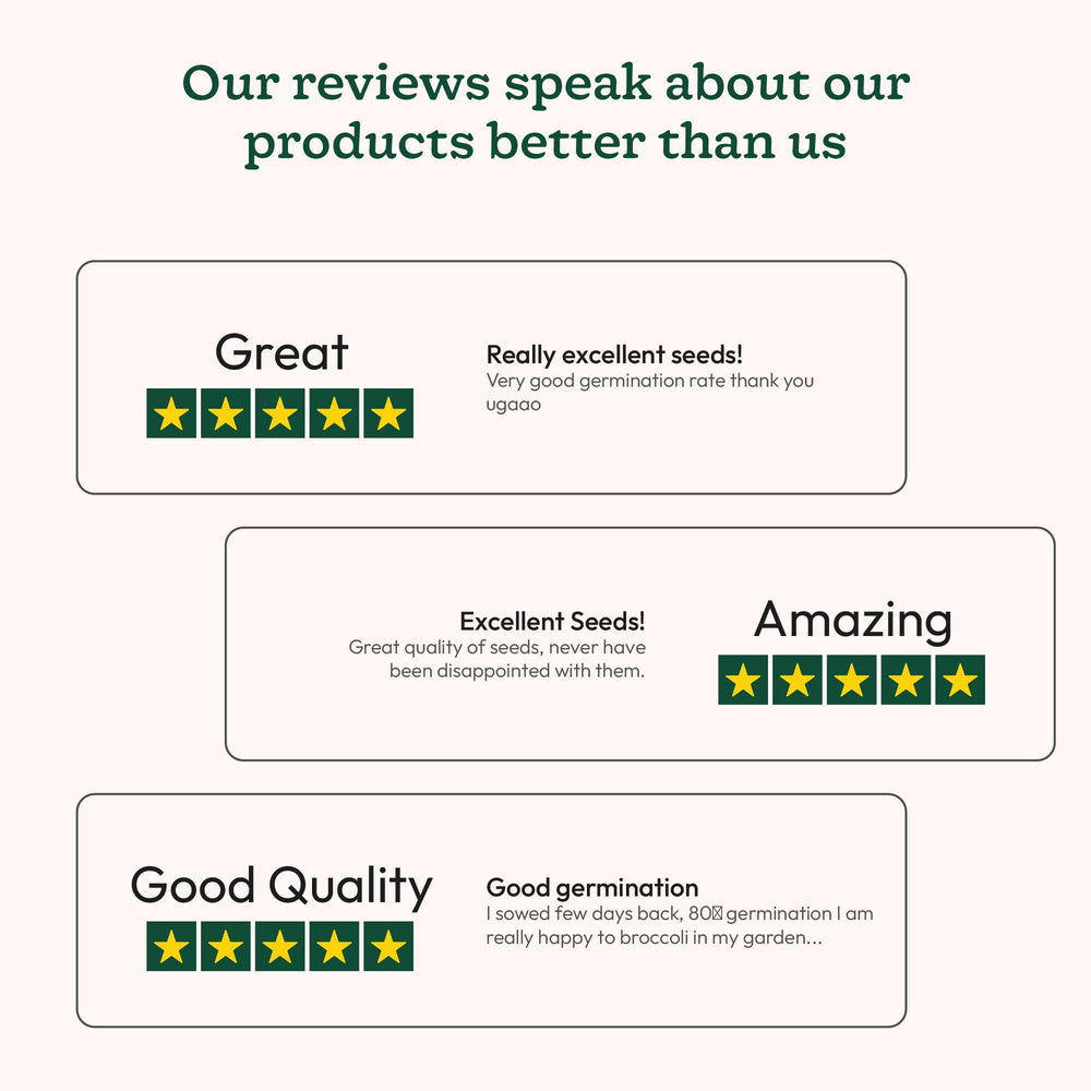At Ugaoo, we believe our seeds are made special by their unparalleled quality and authenticity. We source our seeds from Namdeo Umaji - India’s most trusted organic seed supplier - thus ensuring premium quality like none other. Our seeds bring you a guarantee of substantially better germination rates, while being 100% organic and non-GMO.Whether you’re looking at our flower seeds or vegetable seeds, we bring you only the best so that you, your garden, and your loved ones can witness stunning blooms and bountiful harvests throughout the year.