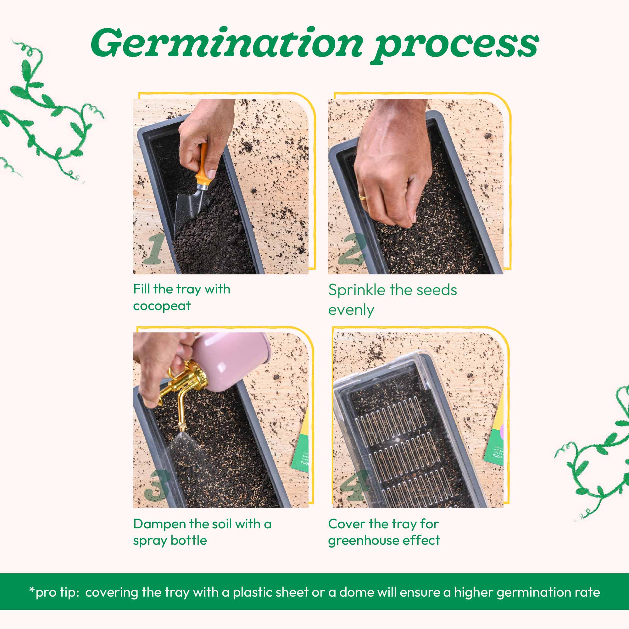 Starting your carrot nantes plant indoors? Sow the seeds in seedling tray with Coco Peat as the growing medium. Remember: consistent moisture is key and lots of sunlight is the key to a healthy harvest!