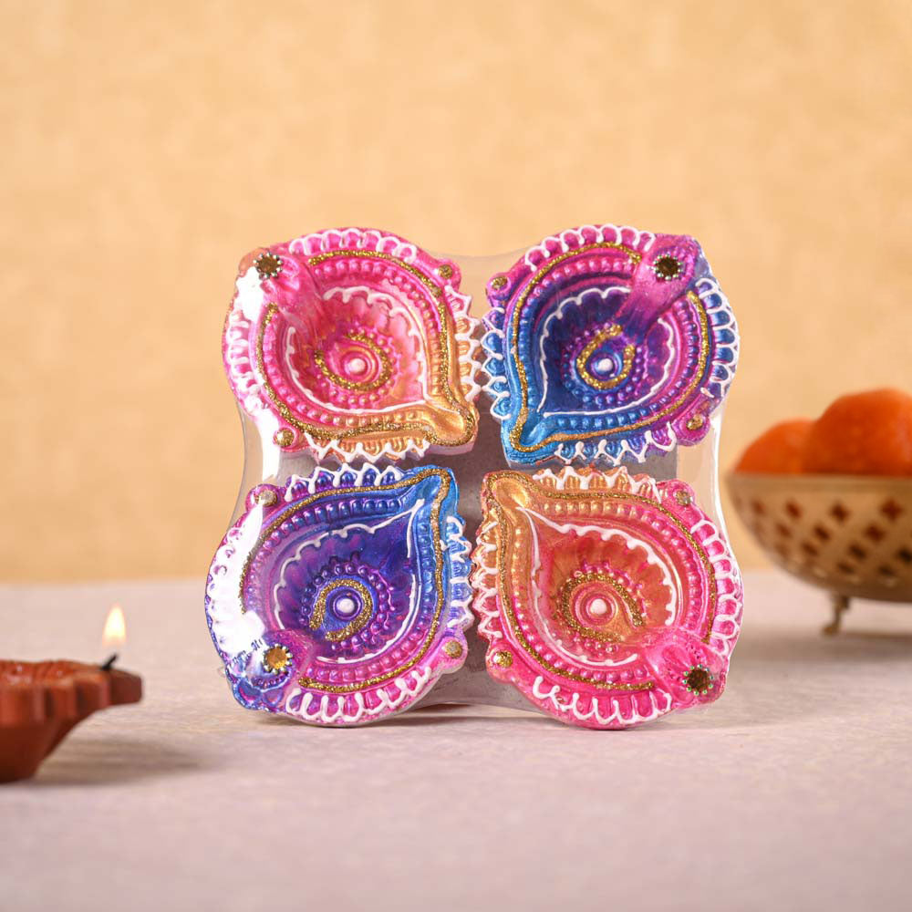 - 4 Hand painted Clay Diya